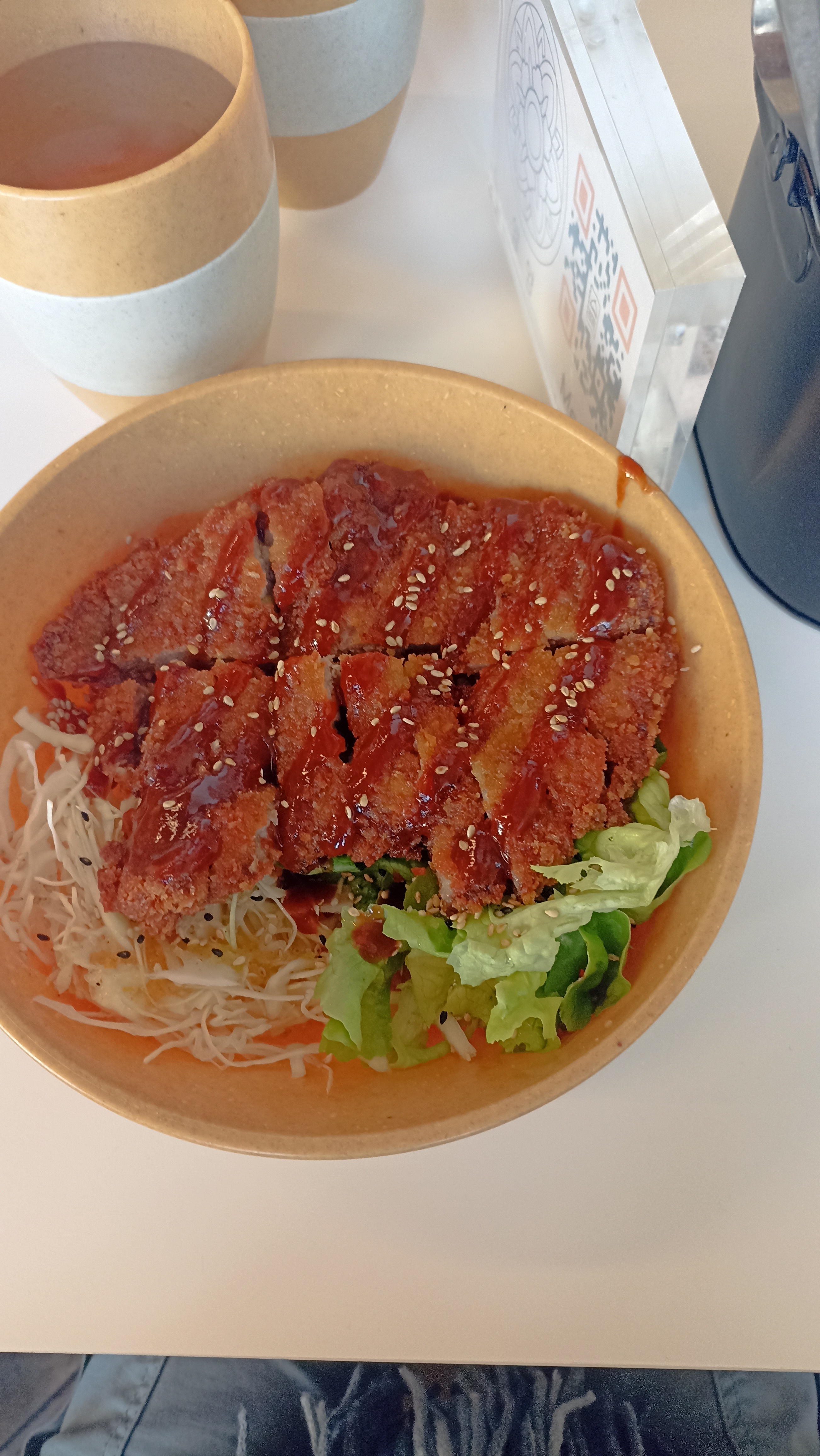 Moyen. Visuellement c'est beau mais ce n'est pas les vraies nourritures coréennes (dommage). Tonkatsu : J'ai essayé de l'exprimer comme la sauce originale que l'on trouve facilement en Corée, mais elle était un peu salée et la quantité de côtelette de porc était très petite et ce n'était pas une viande très bonne. Le riz avait l'air d'avoir été réchauffé, mais la salade avait une sauce rafraîchissante et était délicieuse. Le poulet Gangjeong a un goût très piquant et est fabriqué à partir de viande désossée, mais il est également imbibé de graisse mélangée. Le bibimbap contenait un mélange de viande et de parties difficiles à mâcher, comme les tendons, et dégageait une légère odeur de poisson. Les boissons étaient délicieuses, mais un peu chères pour le prix. En gros, il n'y a pas d'eau fournie.