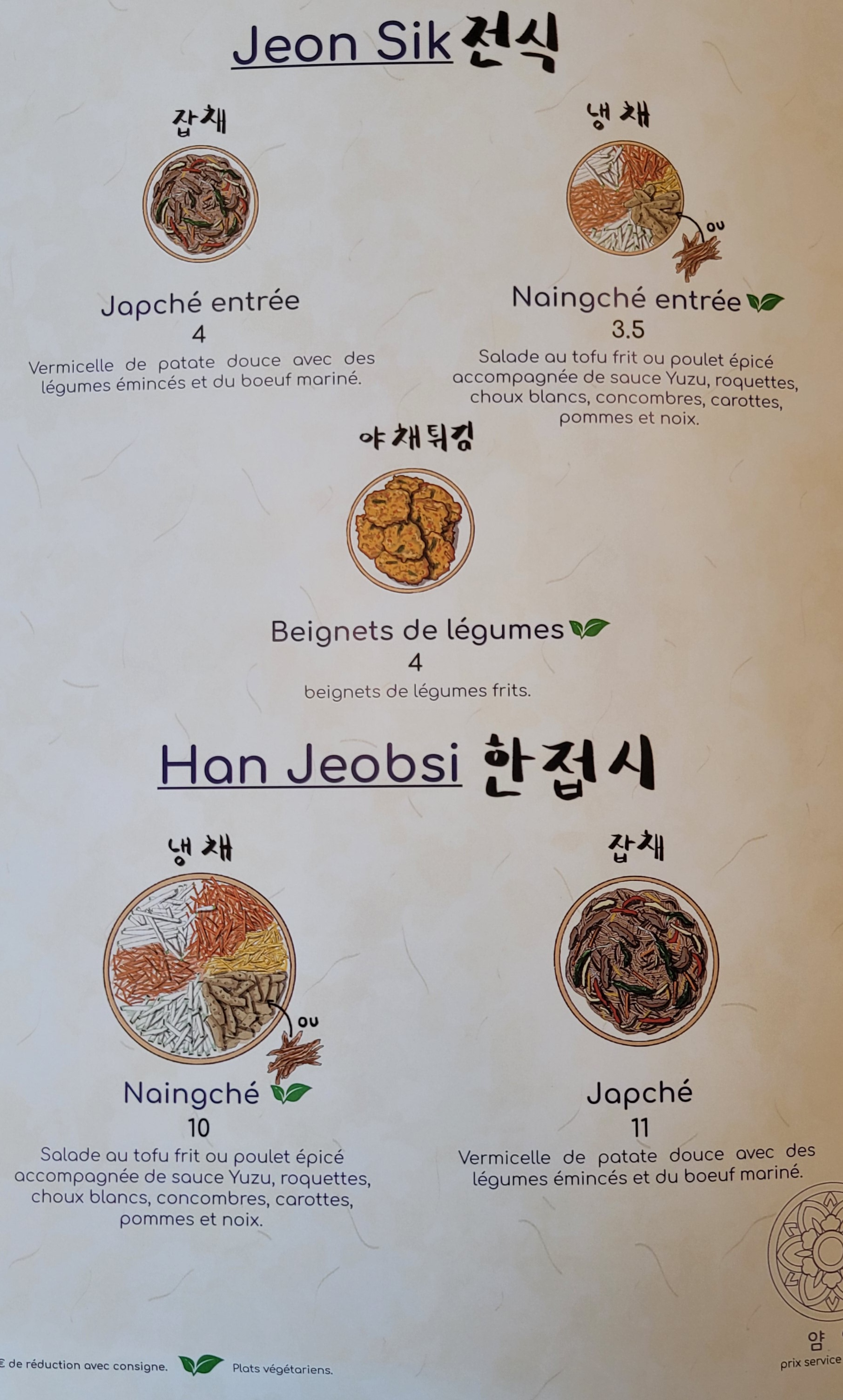 Excellent !!! Accueil, rapidité, plats.. Je recommande vivement pour ceux qui aiment la cuisine coréenne ou ceux qui veulent découvrir...