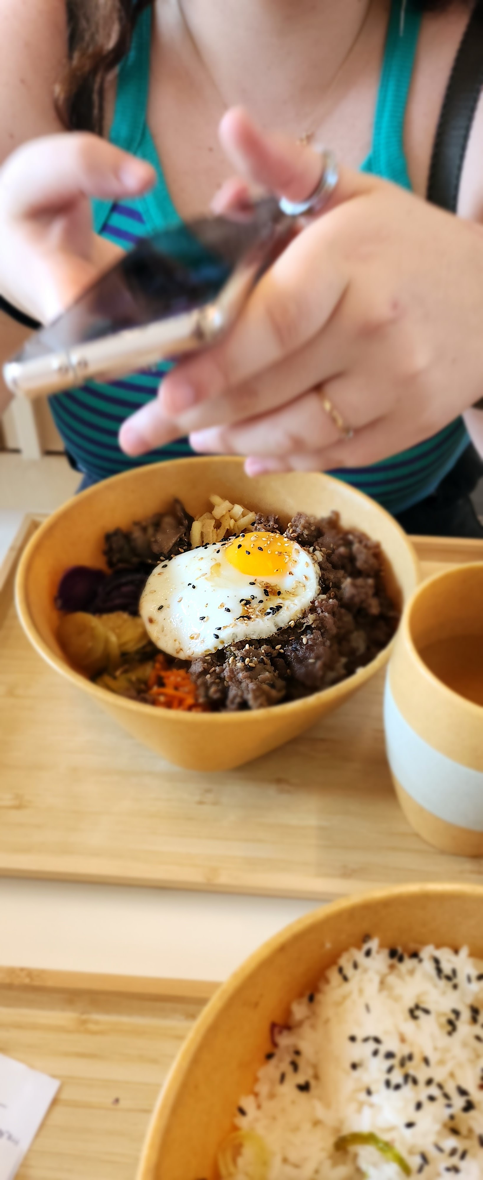 Bibimbap très bon mais je trouve la quantité un peu faible pour le prix. Un peu plus de riz serait bien !