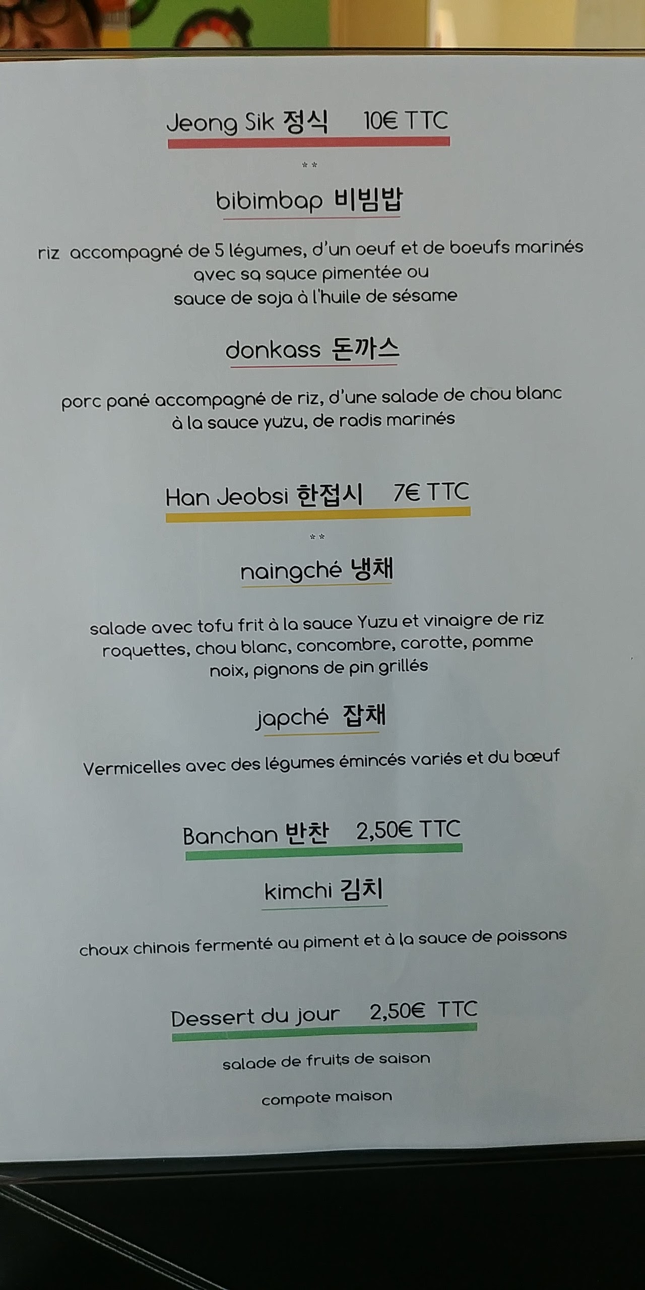 Cuisine coréenne à emporter. Carte ticket restaurant accepté. Plat repas complet pour 11 et 8 euros.