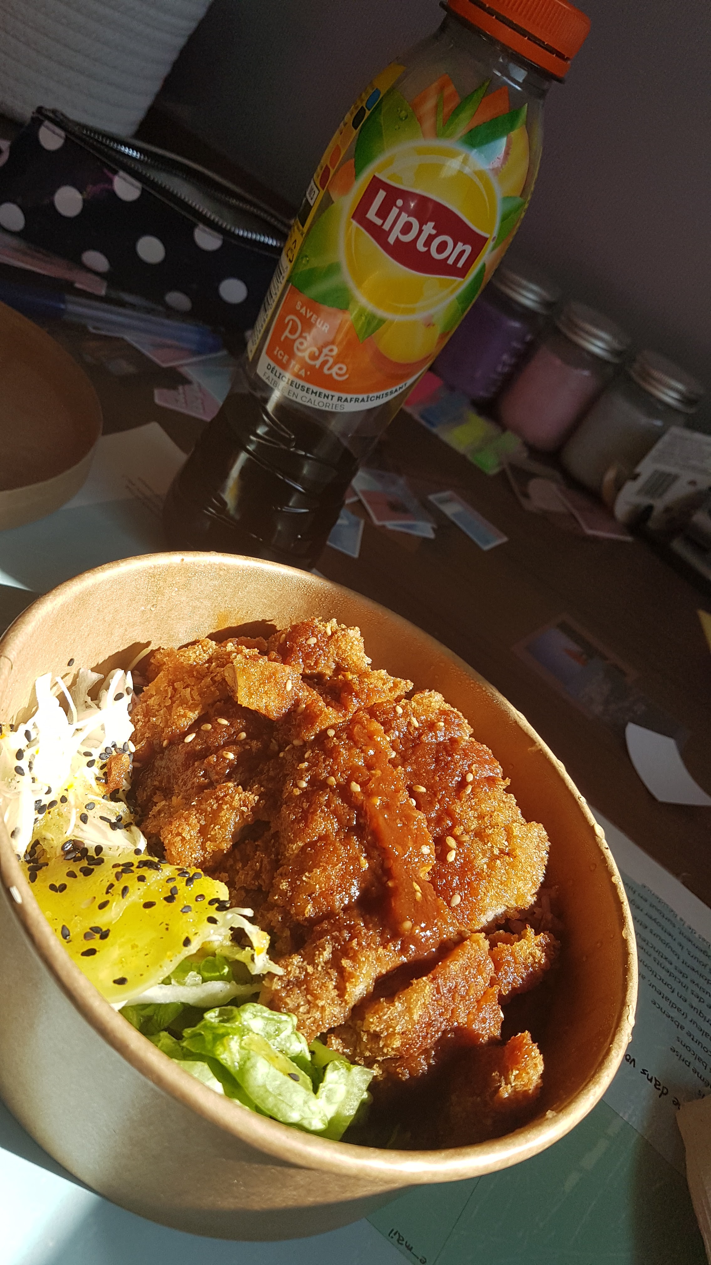 Des recettes correctement exécutées et des assiettes vraiment bien remplies ! Il n'y a quasiment aucunes places à l'intérieur de la boutique, juste quelques tabourets pour manger sur le pouce, il est donc plutôt recommandé de commander à emporter. Je salue leur choix de boissons qui pour une fois change des marques traditionnelles de soda, mais qui surtout encourage une consommation plus durable et responsable, un vrai bon point selon moi. Je vous recommande d'ailleurs chaudement leurs thés glacés de la marque ChariTea : une boisson conservée dans une bouteille en verre et réalisée avec des produits biologiques et issus du commerce équitable.